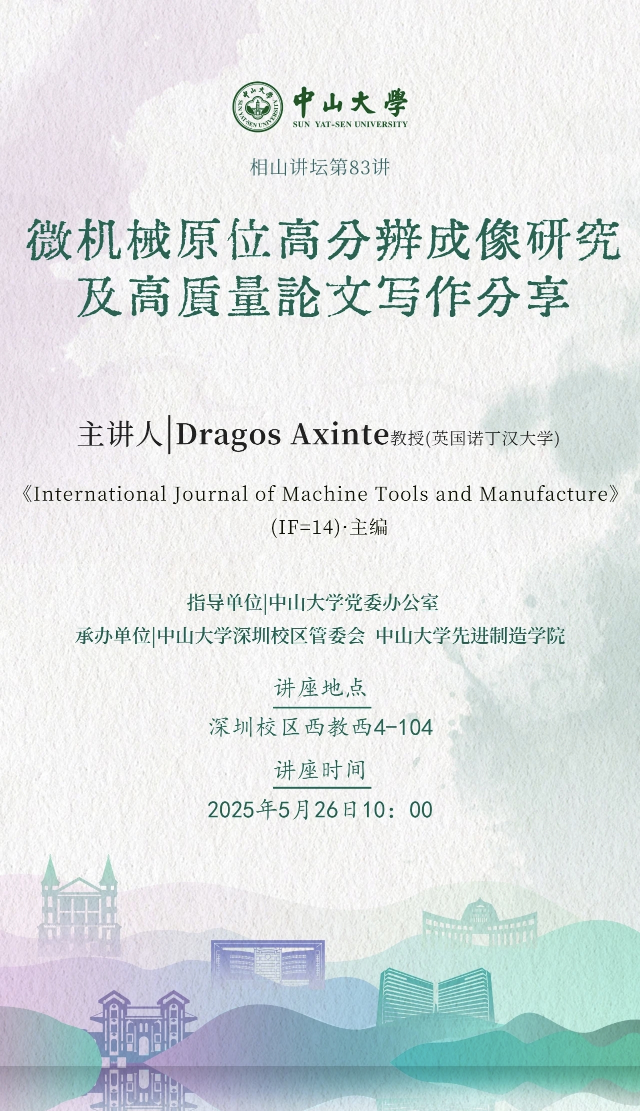 学术讲座 6月 2 yl1111永利集团相山讲坛第85讲:The Extraordinary Importance of Care In Our Times 时间:2025-06-02 15:42 / 2025-06-02 18:42 地址: 5月 23 相山讲坛第84讲:自动驾驶网联汽车的精度感知协同传感与计算 时间:2025-05-23 14:50 / 2025-05-23 17:50 地址: 5月 19 相山讲坛第83讲:微机械原位高分辨成像研究及高质量论文写作分享 时间:2025-05-19 14:49 / 2025-05-19 17:49 地址: 5月 17 相山讲坛第82讲:全球变化下土壤有机质的分子动态 时间:2025-05-17 14:47 / 2025-05-17 17:47 地址: 5月 16 相山讲坛第81讲:Materials for Healthcare 时间:2025-05-16 14:45 / 2025-05-16 17:45 地址: 5月 12 相山讲坛第80讲:新型热电制冷材料 时间:2025-05-12 14:43 / 2025-05-12 17:43 地址: 分页 首页 首页 前一页 前一页 页面 1 当前页 2 页面 3 页面 4 下一页 下一页 末页 末页
