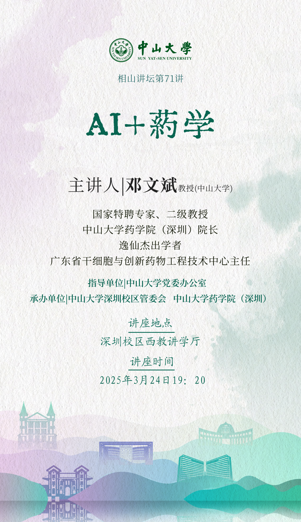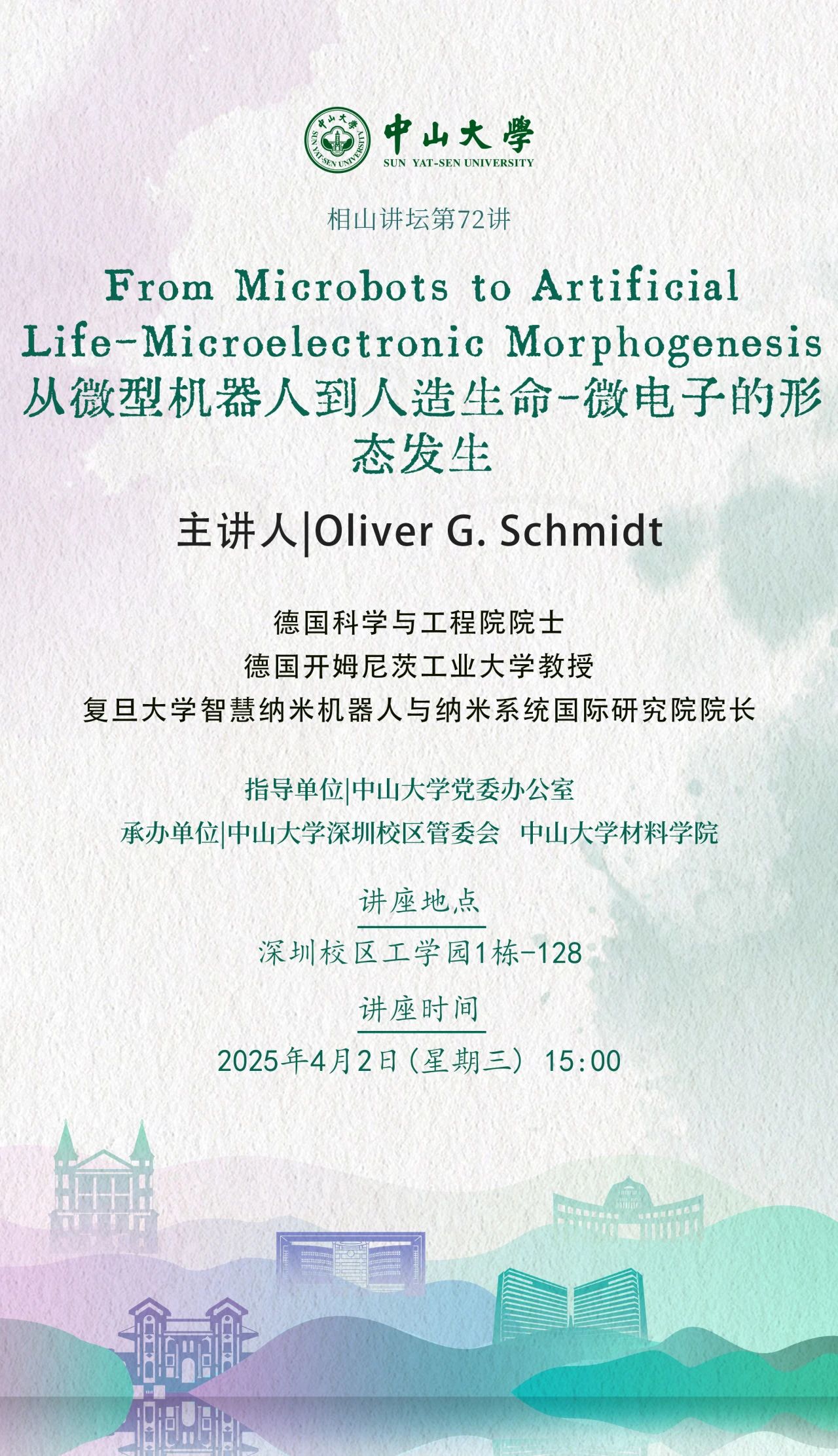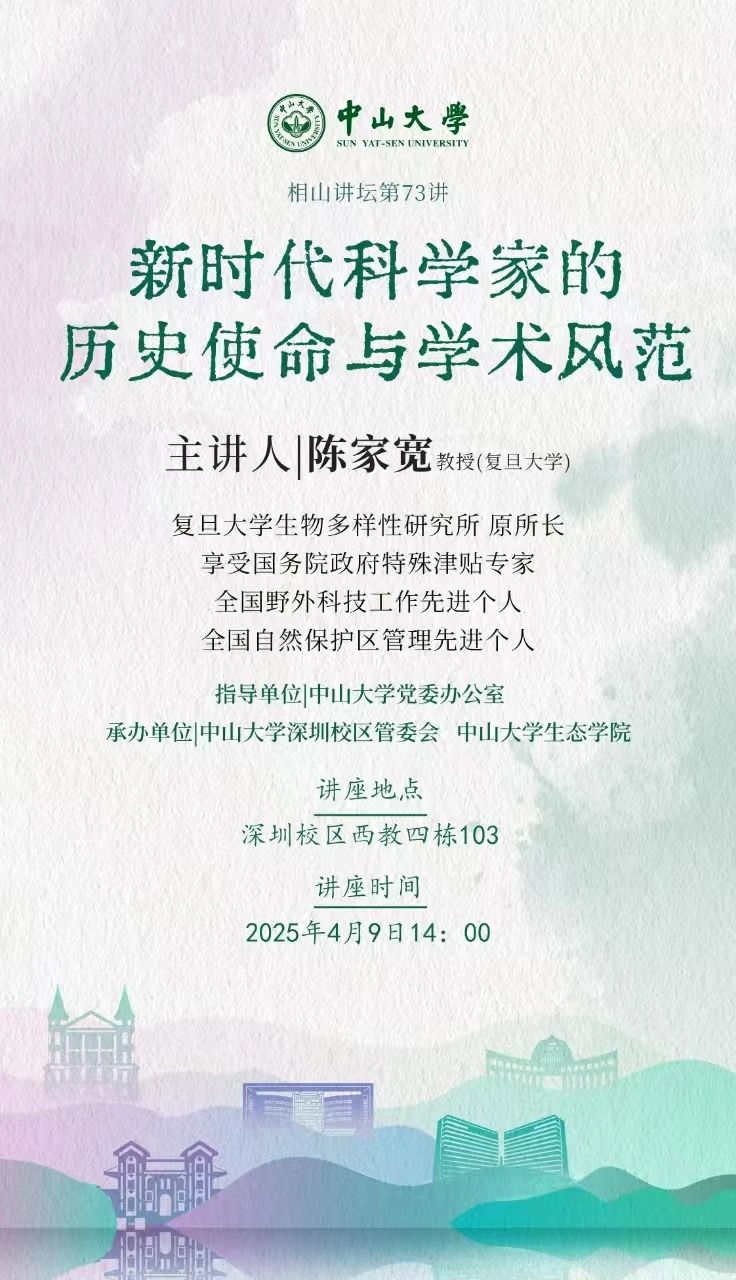 学术讲座 4月 6 相山讲坛第73讲:新时代科学家的历史使命与学术风范 时间:2025-04-06 10:20 / 2025-04-09 10:20 地址:深圳校区 4月 2 相山讲坛第72讲:从微型机器人到人造生命-微电子的形态发生 时间:2025-04-02 10:21 / 2025-04-02 10:21 地址:深圳校区 3月 22 相山讲坛第71讲:“AI+药学” 时间:2025-03-22 10:22 / 2025-03-22 10:22 地址:深圳校区 12月 19 相山讲坛第68讲:青藏高原地区两栖爬行动物多样性形成及演化 时间:2024-12-19 10:23 / 2024-12-19 10:23 地址:深圳校区 分页 首页 首页 前一页 前一页 页面 1 页面 2 页面 3 当前页 4